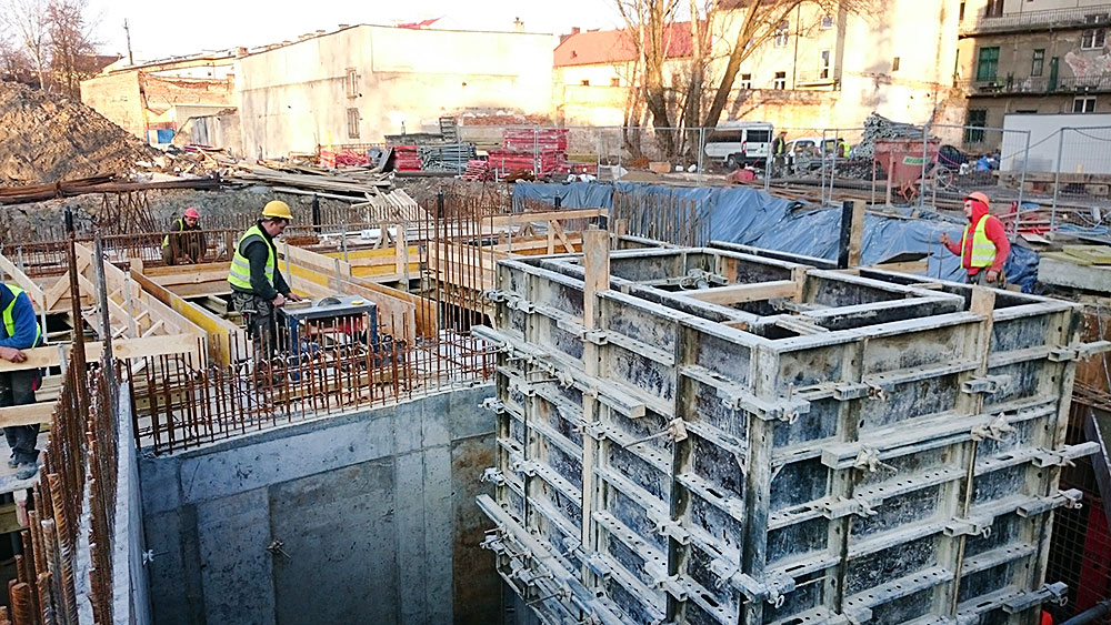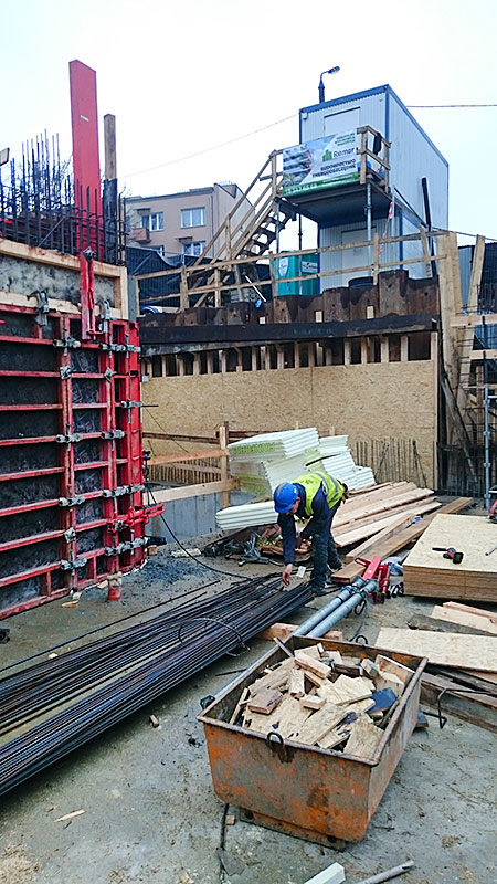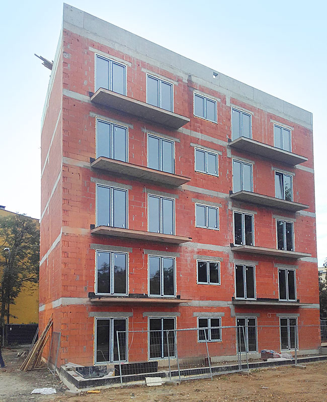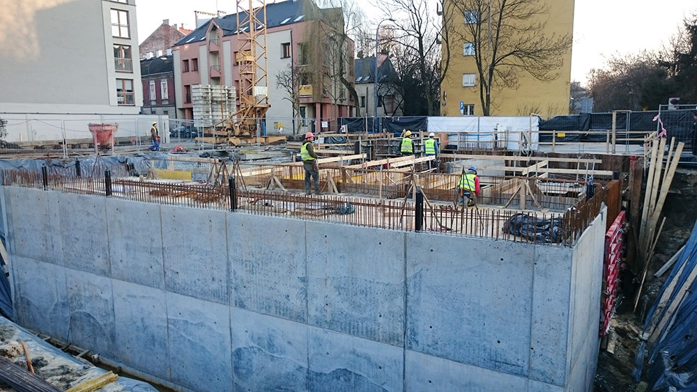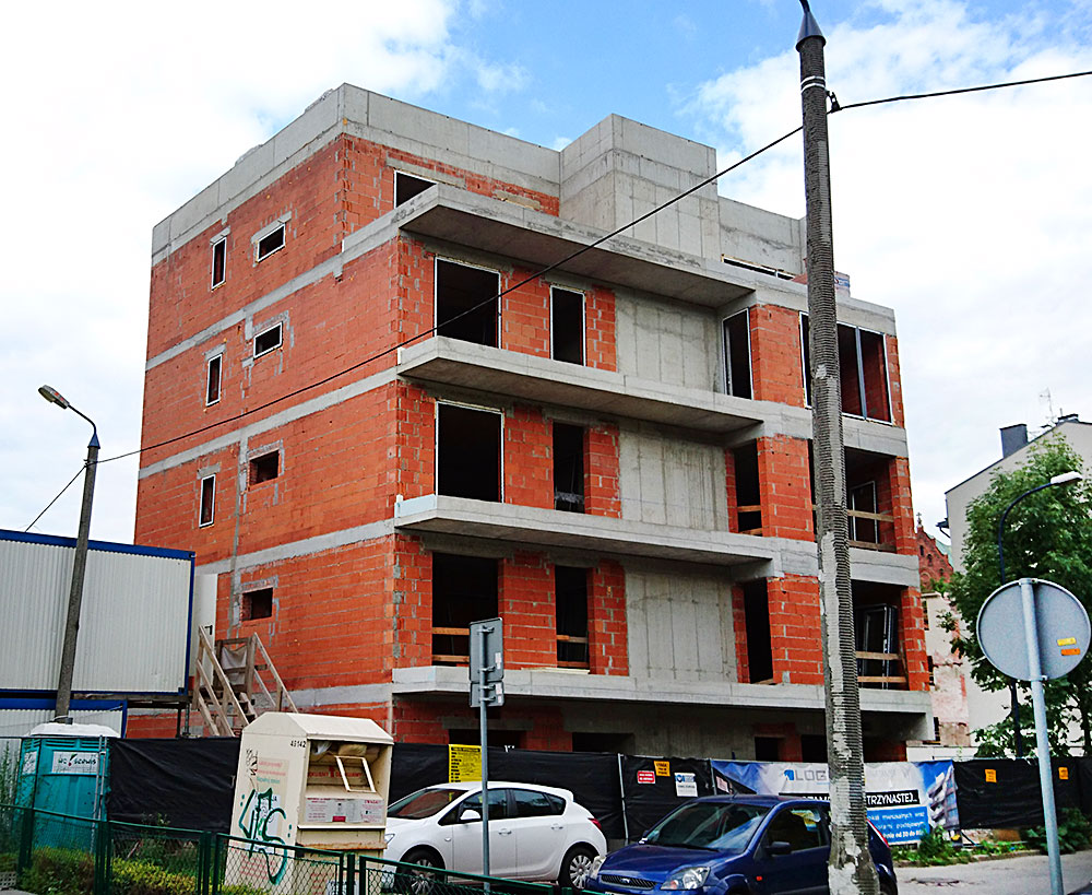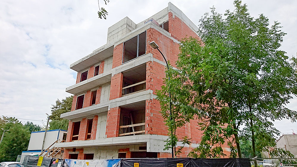 Na przestrzeni roku 2016 zajmowaliśmy się m.in. realizacja inwestycji budowy obiektu mieszkalnego, wielorodzinnego z garażem podziemnym, oraz wewnętrznymi instalacjami: wodno-kanalizacyjnymi, centralnego ogrzewania, wentylacji mechanicznej i elektryczną a także zjazdem z drogi publicznej i pochylnią do garażu podziemnego. Prace polegały na budowie budynku w stanie developerskim o powierzchni ok. 660m2