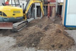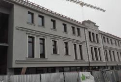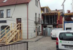 - rozbudowie budynku od strony zachodniej i południowej na pomieszczenia usługowe z dwoma lokalami mieszkalnymi wraz z instalacjami wewnętrznymi w budynku: elektryczna wod. - kan., gazowa, centralnego ogrzewania, wentylacji mechanicznej, klimatyzacji, instalacji c.t. i wody lodowej dla wentylacji oraz przyłączami: elektrycznym, wody, kan.- sanit., gazu, kan. deszczowej z przekładka wraz z separatorem produktów ropopochodnych, przebudowie nawierzchni utwardzonych z droga wewnętrzną i miejscami postojowymi dla samochodów osobowych, przebudowa zjazdów.