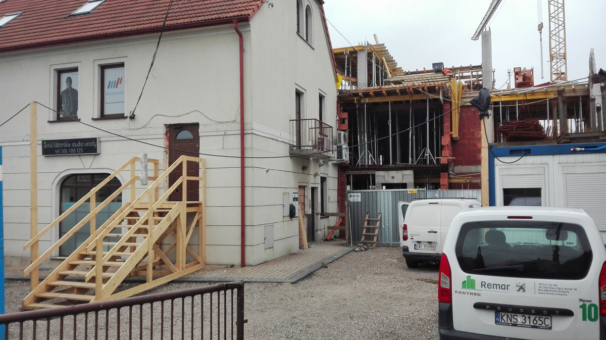 Przebudowa i rozbudowa budynku usługowego w Niepołomicach na budynek usługowy z dwoma lokalami mieszkalnymi wraz z instalacjami wewnętrznymi: wod-kan, co. gaz, elektryczne, wentylacja mechaniczna z klimatyzacja, wewnętrzna instalacja kanalizacji deszczowej, oświetlenie zewnętrzne budynku wraz z WLZ, z przyłączami: wody, kan. sanit., gazu, kan. deszczowej z przekładka wraz z separatorem produktów ropopochodnych, budowa i przebudowa dwóch zjazdów, budowa drogi wewnętrznej, dojść ( chodniki, place wewnętrzne ) i miejsc postojowych dla samochodów osobowych, muru oporowego. Rozbiórka budynku usługowego w Niepołomicach.